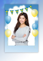 Studentmössa, blågula band, blommor